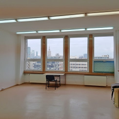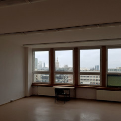 Lokal o powierzchni 41,62m2, zlokalizowany na 6-tym piętrze naszego budynku, składający się z jednego pomieszczenia o regularnym, zbliżonym do kwadratu kształcie, z bardzo dobrym dostępem do światła dziennego i panoramicznym widokiem na Kampus PW i panoramę wieżowców w Centrum. Wysokość pomieszczenia do stropu wynosi 3,11m, z 1 przeszkloną ścianą (okna 2,2m wysokości), podłoga wykładzina PCV. Ogrzewanie z sieci miejskiej. Budynek z całodobową ochroną.