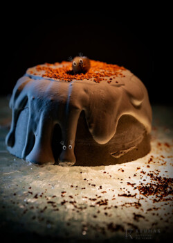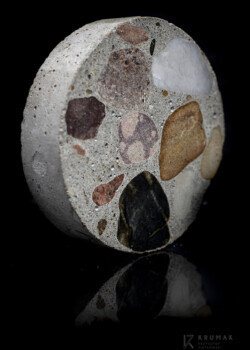 Babka z betonu architektonicznego polana gipsowym lukrem z posypką z ziemi okrzemkowej filtracyjnej. Beton architektoniczny wymaga odpowiedniego doboru składników zarówno pod względem ilości, jak i jakości, ale również wykonawczej precyzji i staranności w celu odwzorowania założonego projektu i wizji architekta.